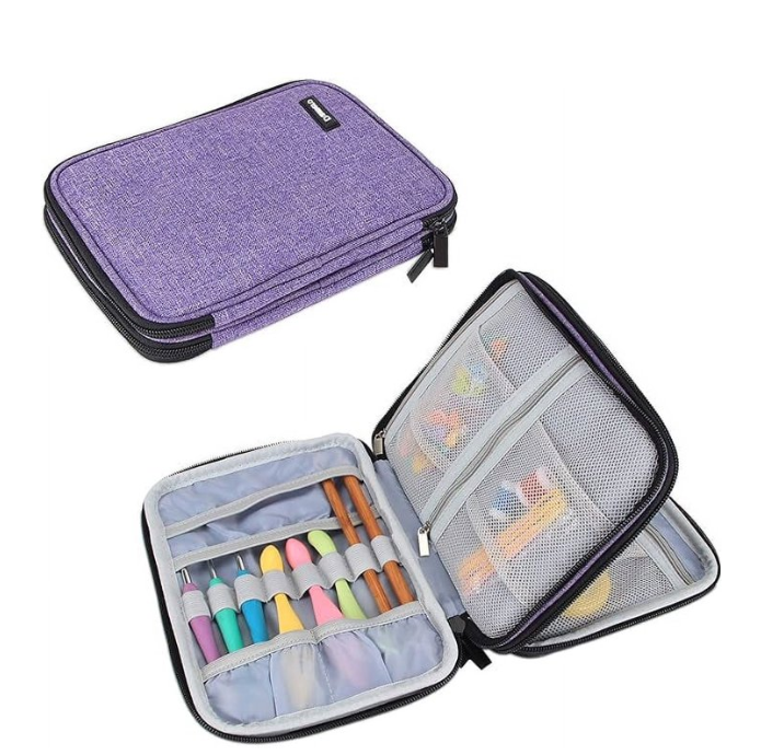Damero Crochet Hook Case, Travel Storage Bag for Swing Crochet Hooks, Lighted Hooks, Needles(Up to 8'') and Accessories, Large, Purple (No Accessories Included) Damero is specialized in producing Knitting Needle Bags to meet customers' Hand Made needs when travel and daily use. Our team designs practical organizer bags continuously based on our strong R&D and production.